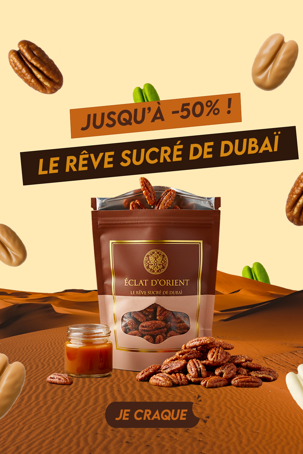 La rencontre entre le croquant d’une noix de pécan et l’élégance sucrée de Dubaï.